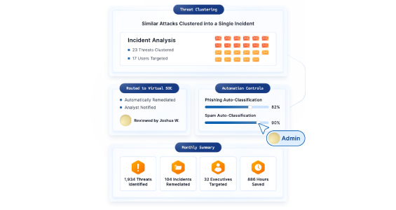 Agentic SOC automation investigates, classifies, and remediates threats across tenants in minutes.